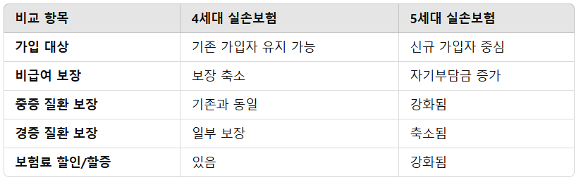 🔍5. 4세대 vs 5세대 실손보험 비교