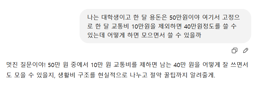 한 달 용돈 50만 원으로 살아남는 법을 AI에게 물어보고 있더라고요 😂